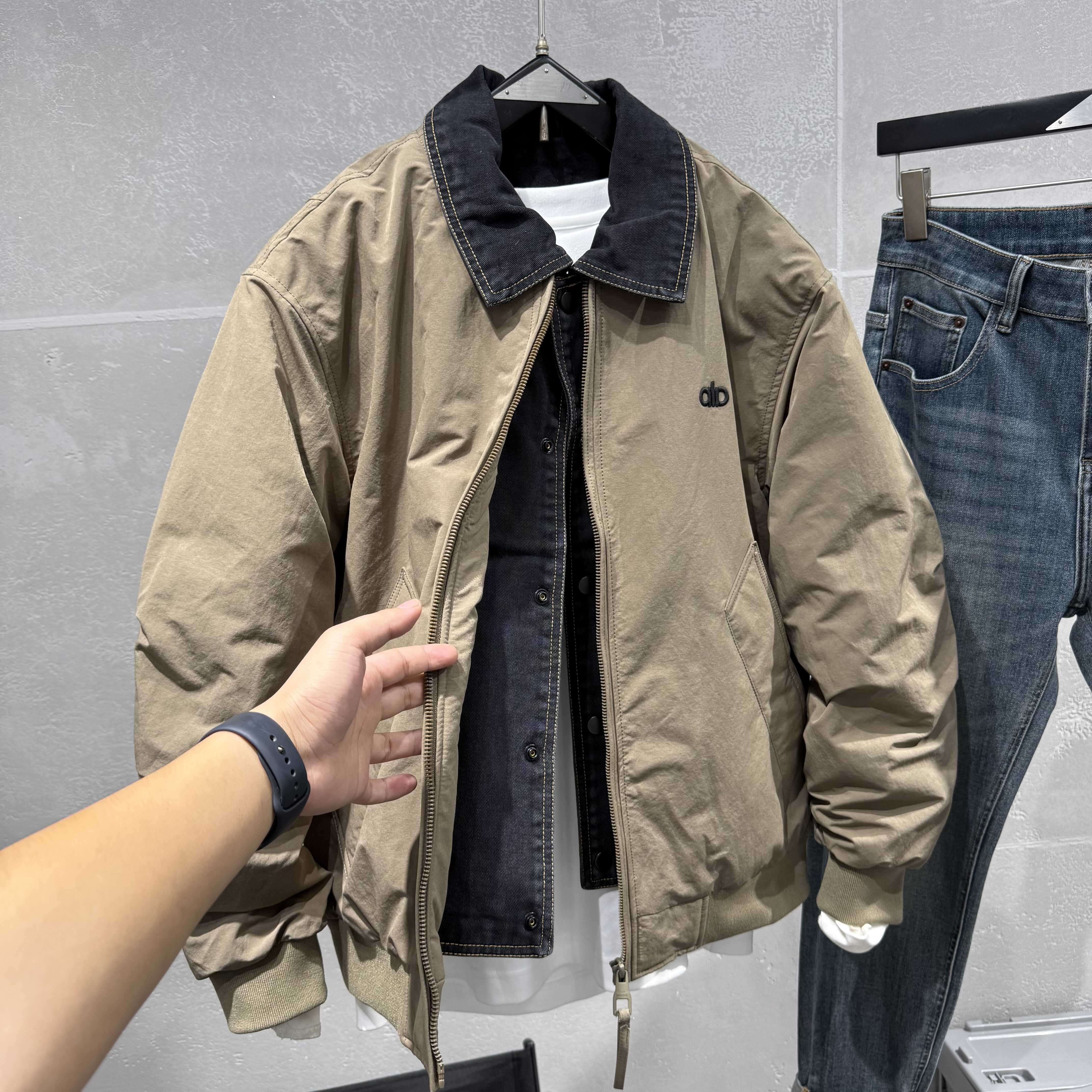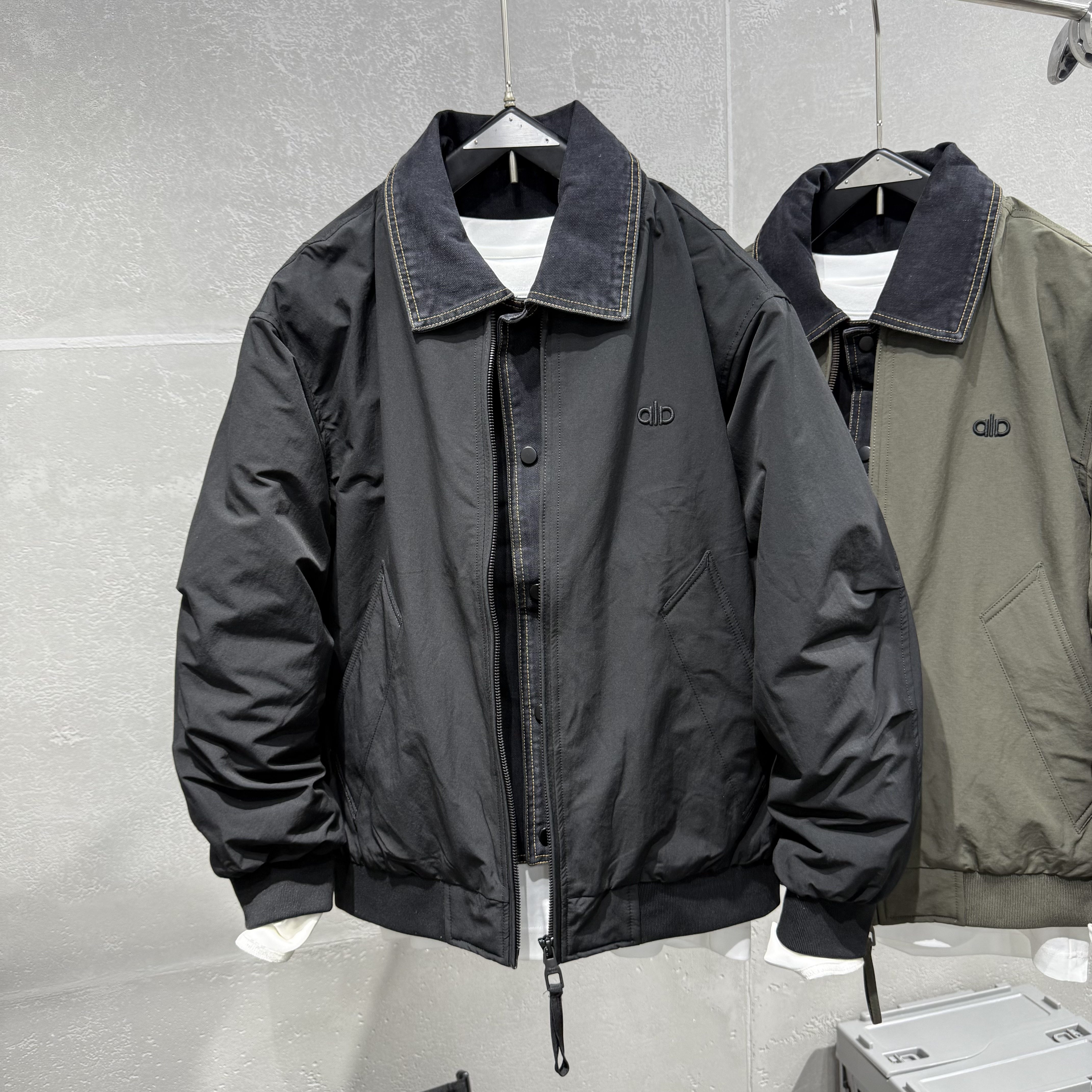 2025秋冬新款男士羽绒服翻领假两件保暖夹克流行青年宽松外穿上衣
