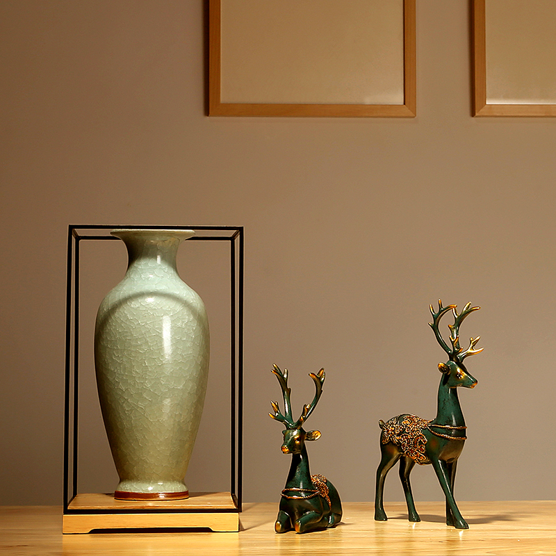 景德镇陶瓷器手工新中式青色冰裂花瓶家居客厅书房装饰摆件工艺品