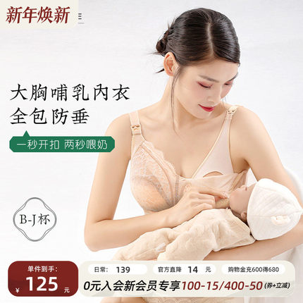 月色大胸哺乳内衣防下垂聚拢大码全罩杯孕妇文胸怀孕产后喂奶专用
