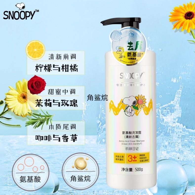 史努比氨基酸洗发露水500g去屑洗发露学生青少年柔顺亮泽专用正品