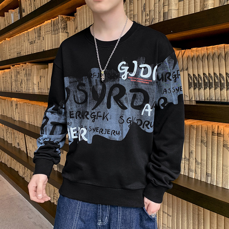 圆领卫衣男装春秋长袖上衣2025新款青少年字母打底衫