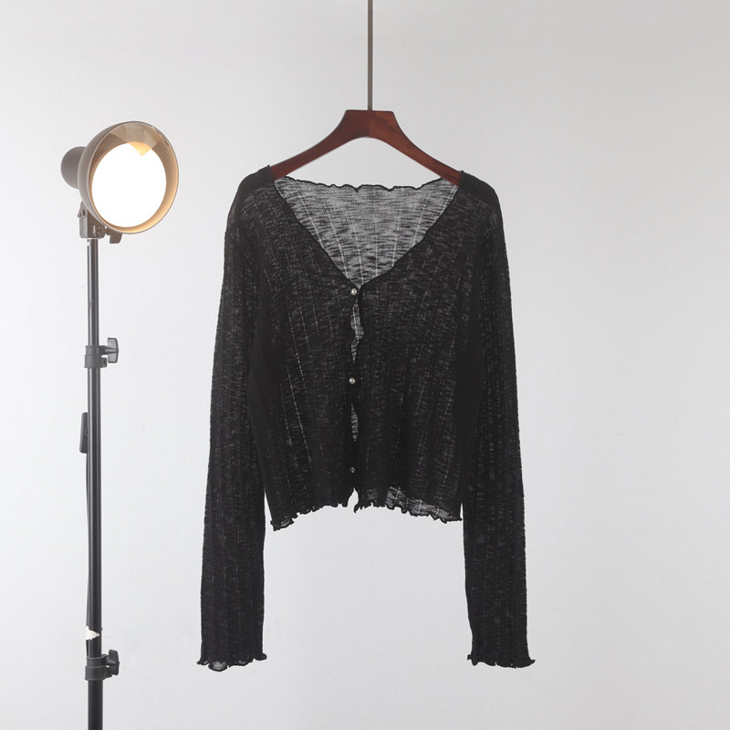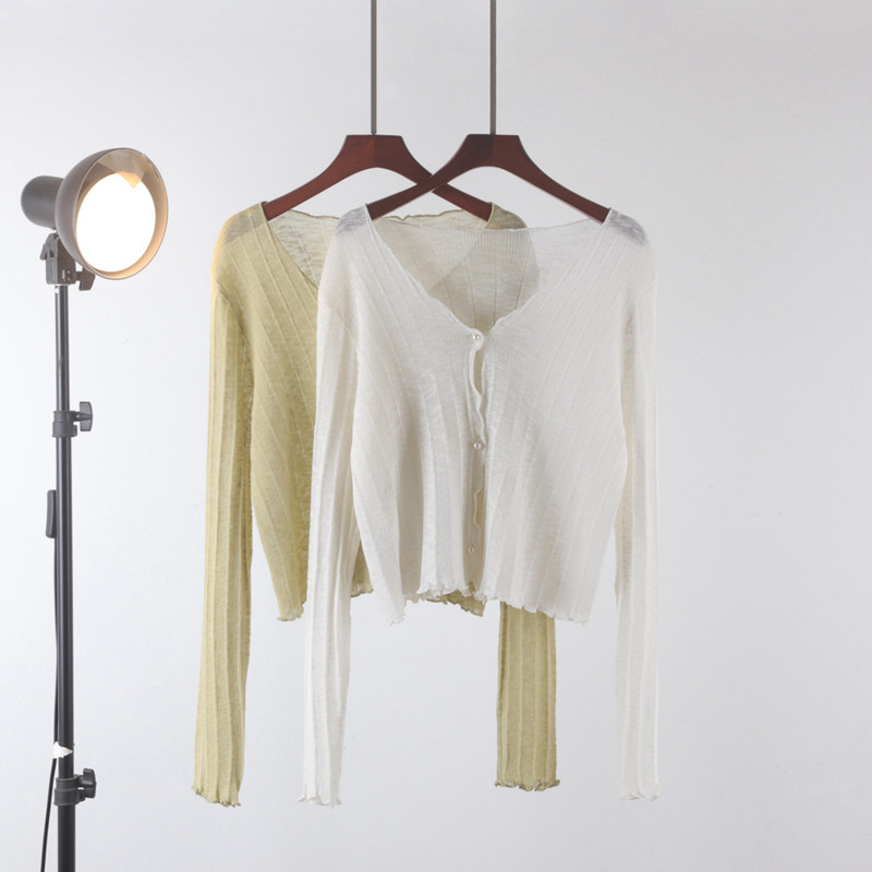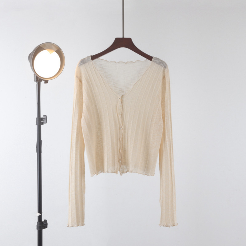 冰丝防晒针织开衫女薄款木耳边单排扣夏季披肩外搭配吊带短款上衣