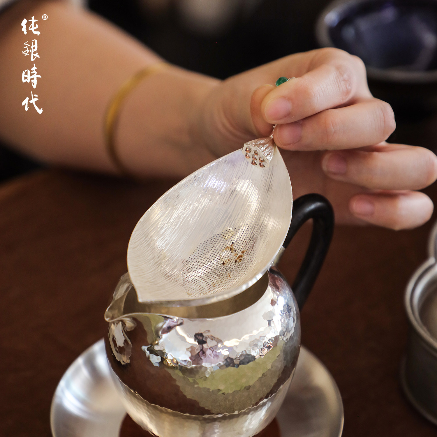 纯银时代 雅致莲瓣茶滤茶漏纯银999过滤器家用泡茶过滤小众