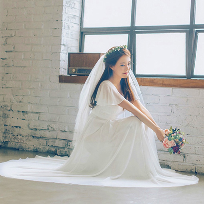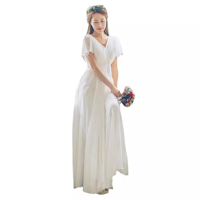 2025新款现货轻婚纱礼服旅拍森系双肩V领长款新娘结婚出门旅