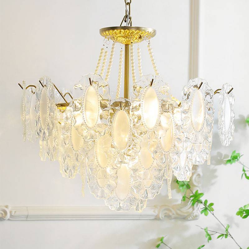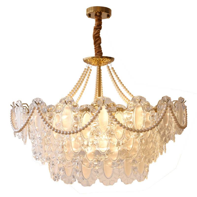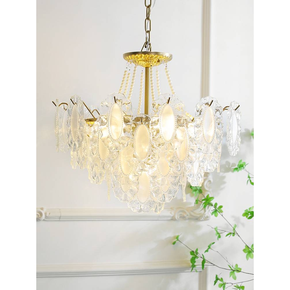 2024年新款法式水晶吊灯奶油风珍珠款玻璃中古轻奢客厅主卧室灯具