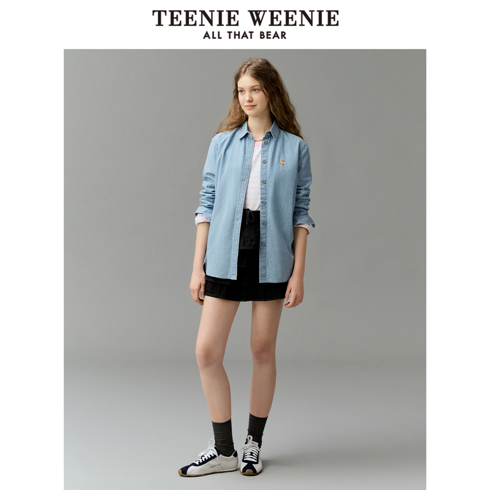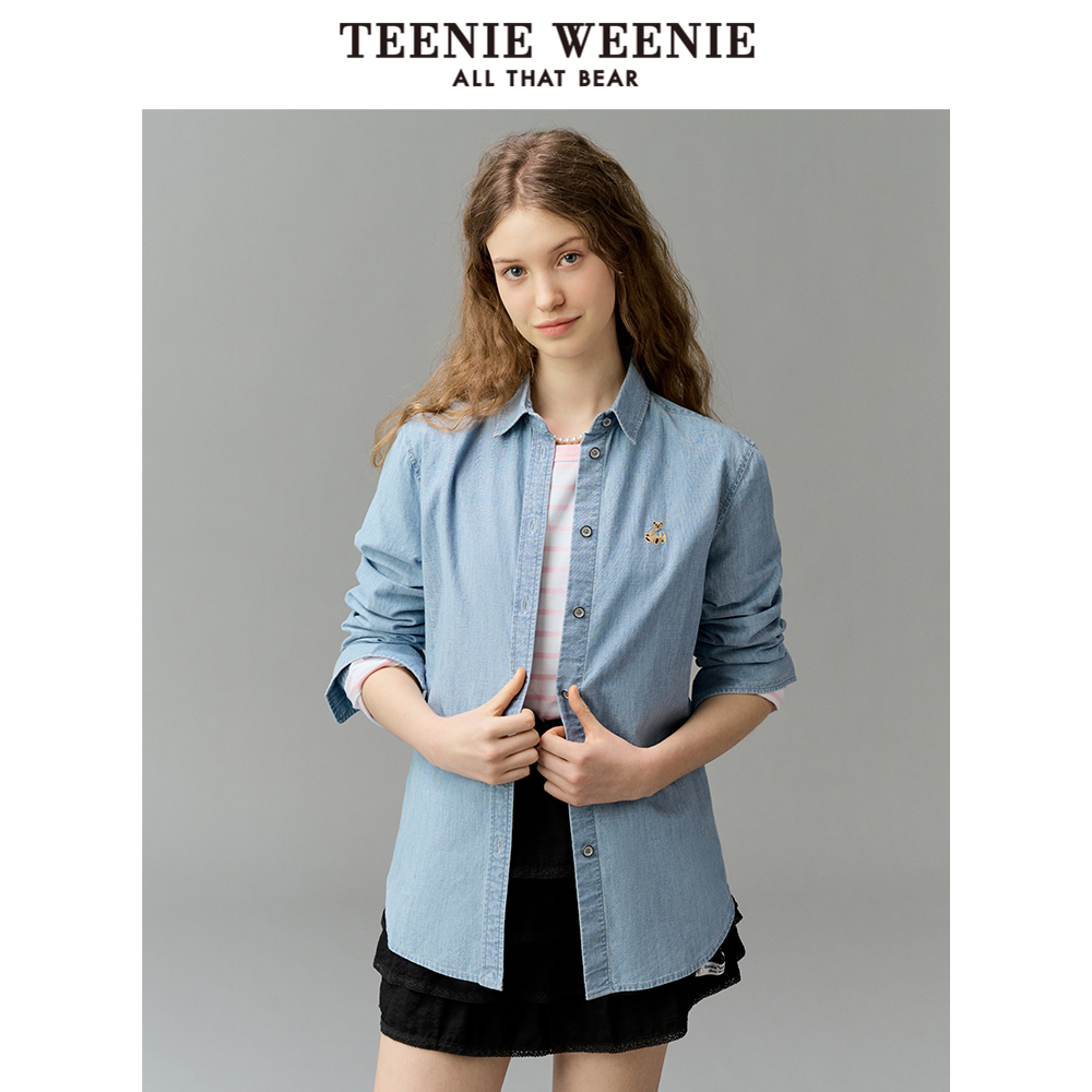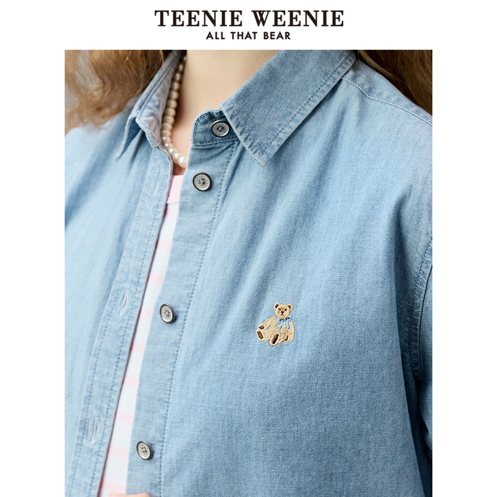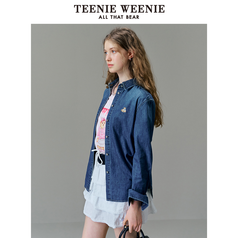 TeenieWeenie小熊女装衬衫2025年秋季新款休闲通勤字母刺绣牛仔衫