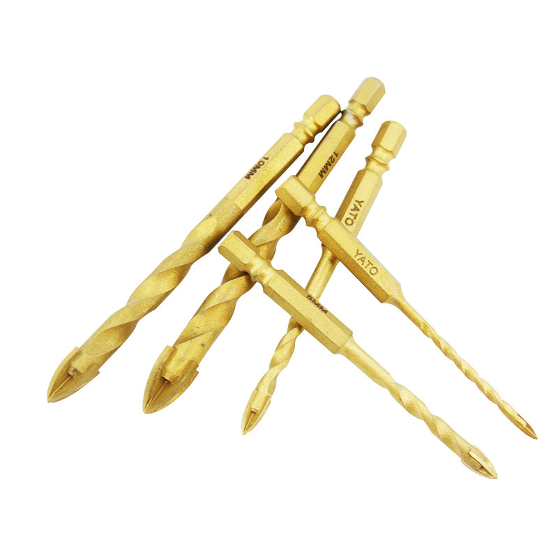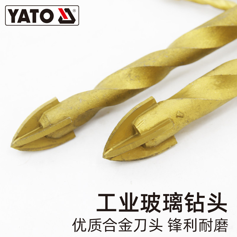 YATO六角柄玻璃钻头1/4"3-12mm瓷砖大理石打孔开孔十字三角四刃钻