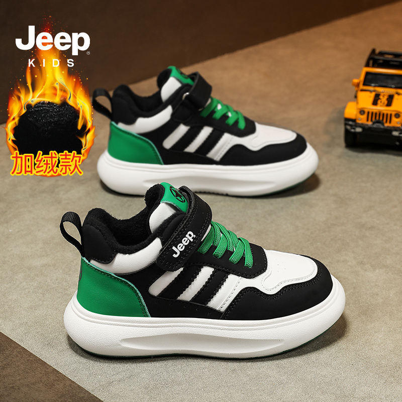Jeep儿童鞋男童板鞋2025秋冬新款皮面防水加绒二棉鞋子男孩运动鞋