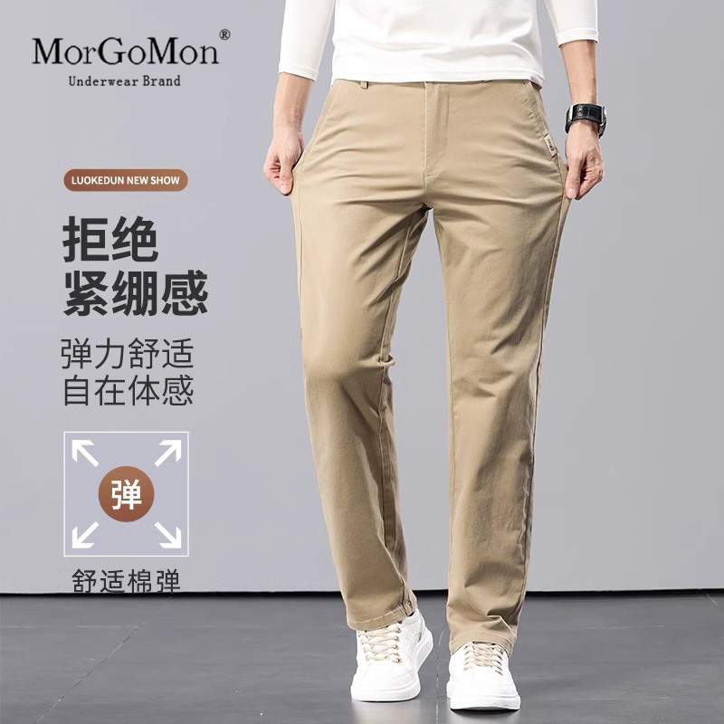 纯棉休闲裤男秋冬季2025新款卡其色高端裤子男直筒中年男士长裤