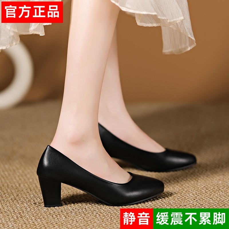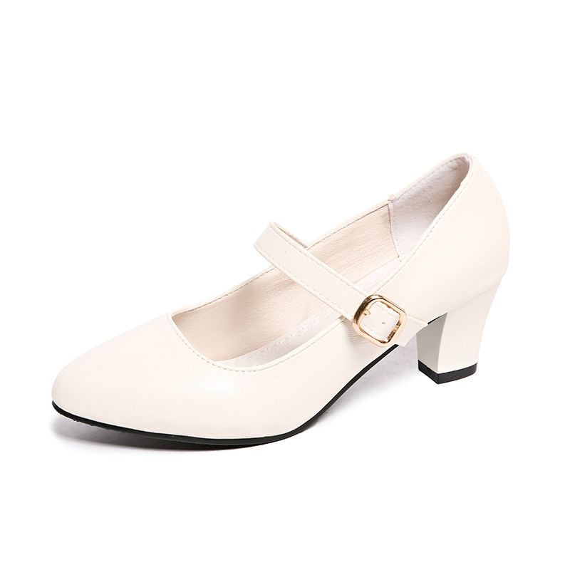不累脚裸色高跟鞋女粗跟3圆头5厘米白色黑色职业工作通勤软皮单鞋