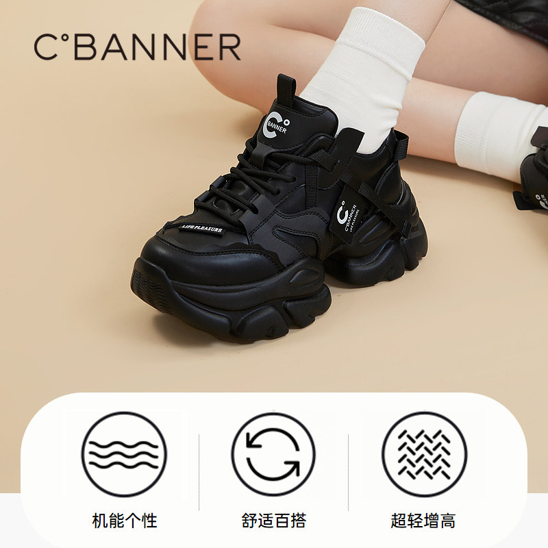 千百度厚底增高时尚老爹鞋百搭秋冬气质轻便休闲运动鞋机能鞋女鞋