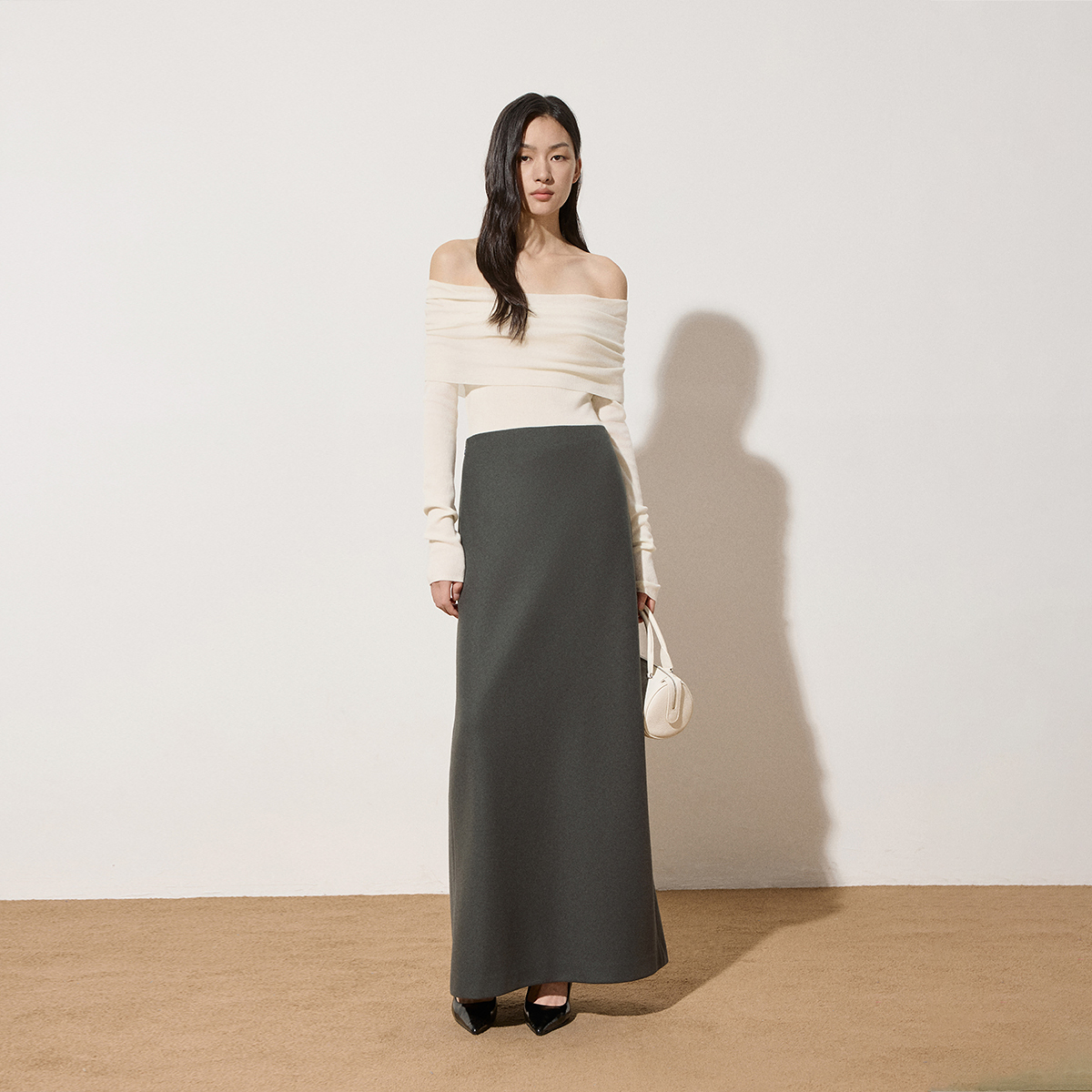OCHIRLY欧时力 进口羊毛针织呢直筒半身裙女长裙开衩2025秋季新品