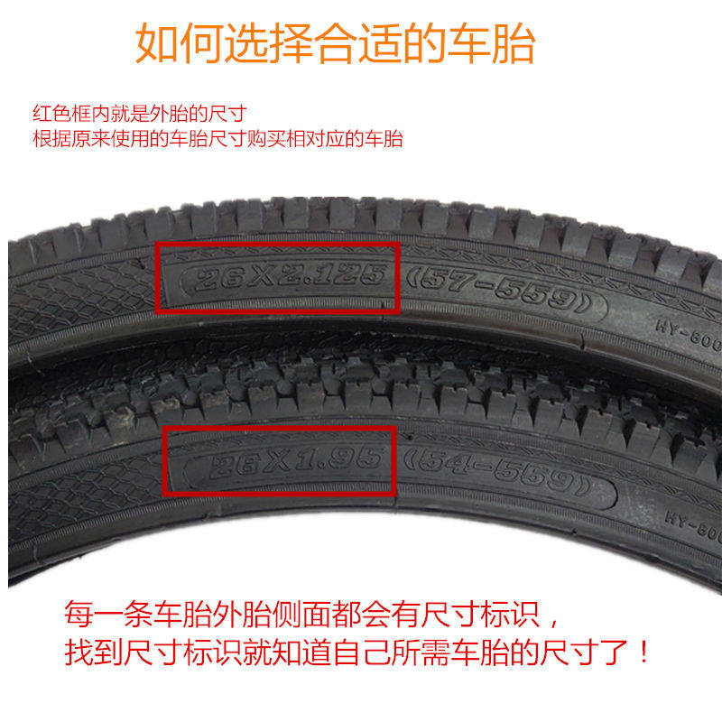 加厚自行车轮胎26/24/22/20寸x1.50/1.75/1.95/2.125山地车外胎带