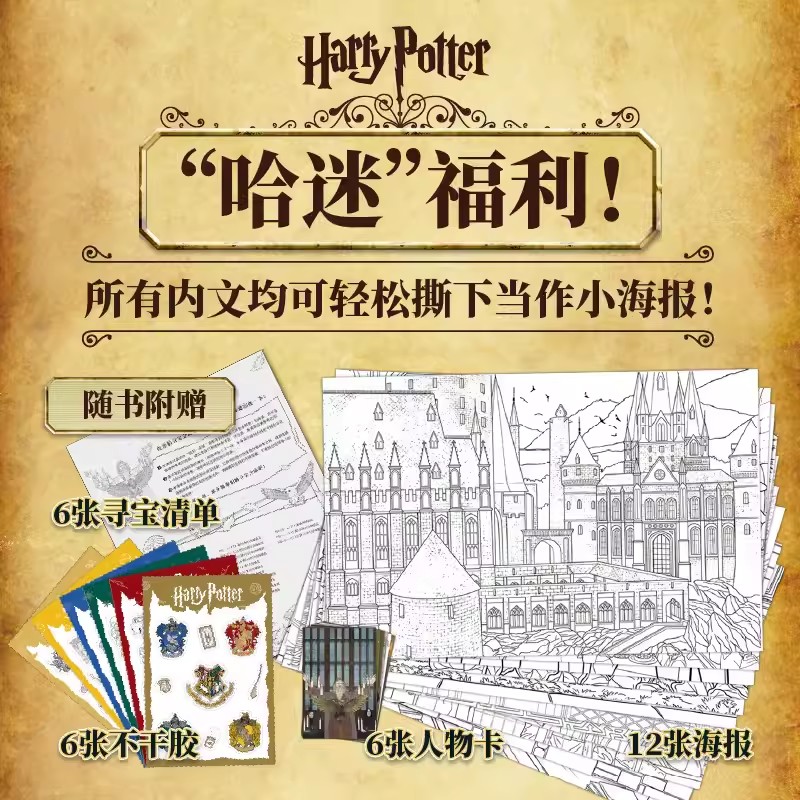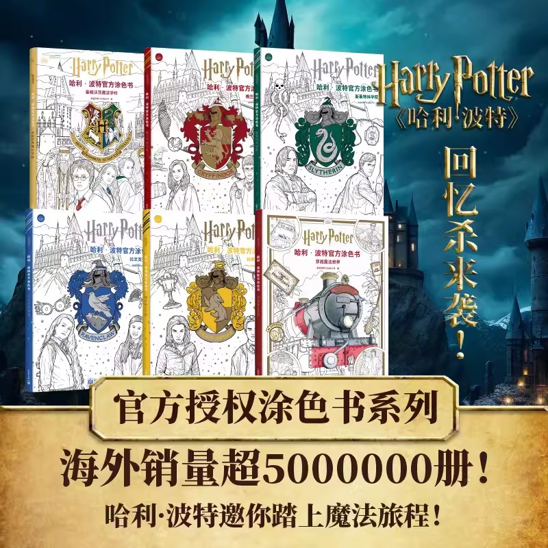 哈利波特官方涂色书全套6册格兰芬多学院斯莱特林学院拉文克劳学院赫奇帕奇学院穿越魔法世界霍格沃茨魔法学校 儿童大人减压涂色书