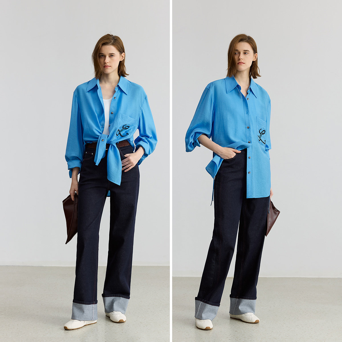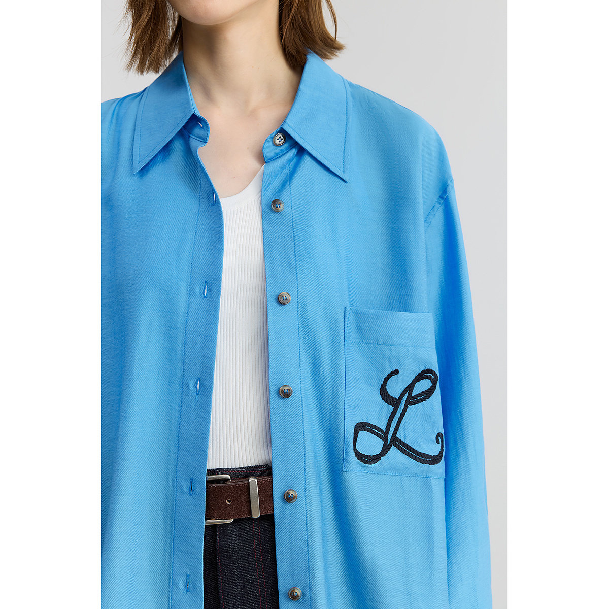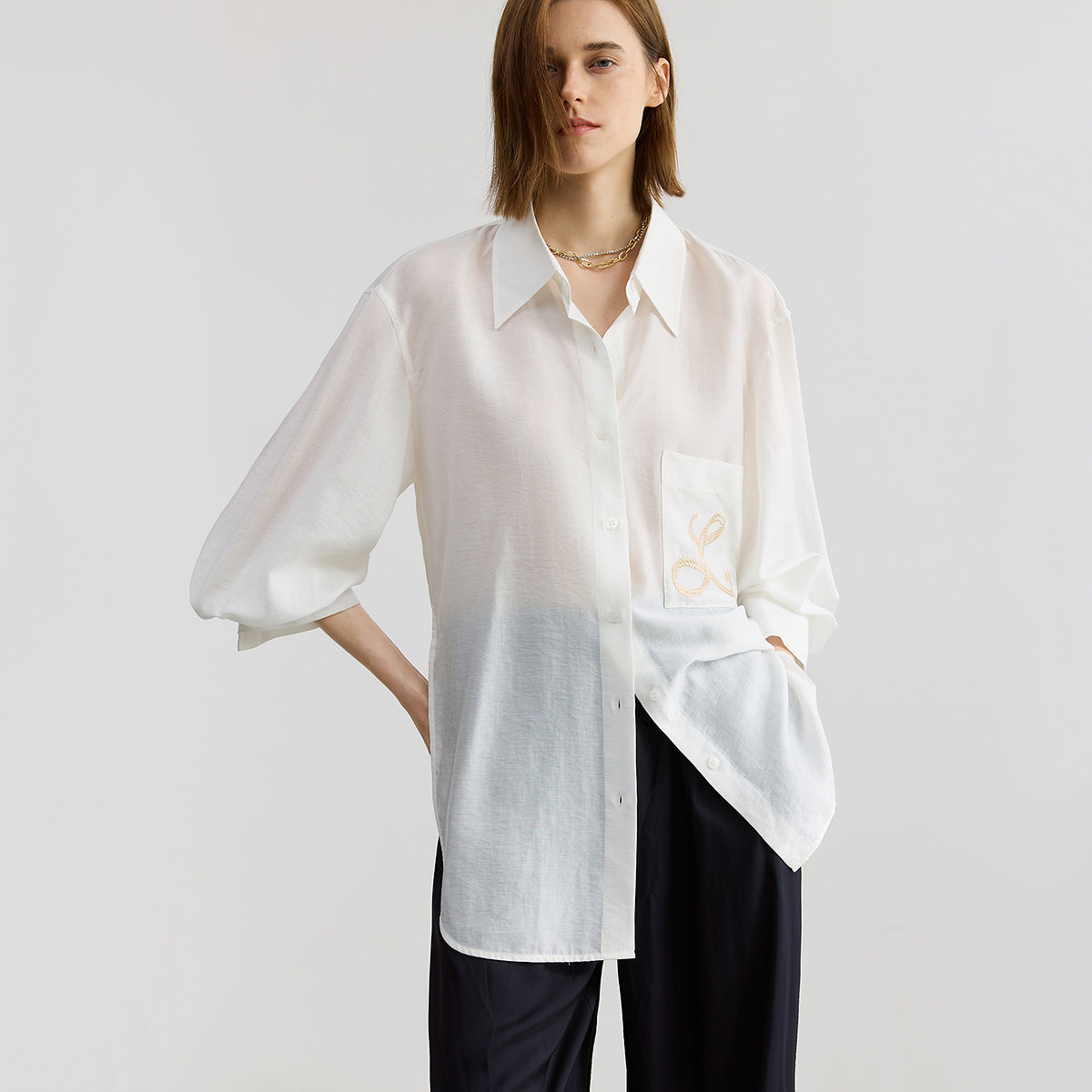 【商场同款】LILY2025秋新款莱赛尔亚麻混纺极简风休闲衬衫外套女