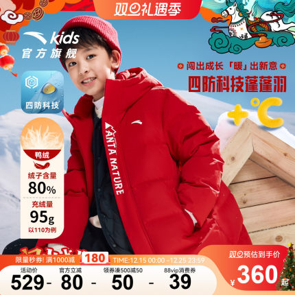 【马年新年红色】安踏儿童中长羽绒服2025年冬四防厚外套175可穿