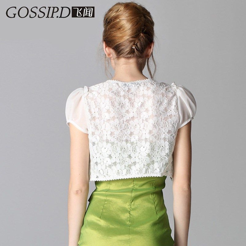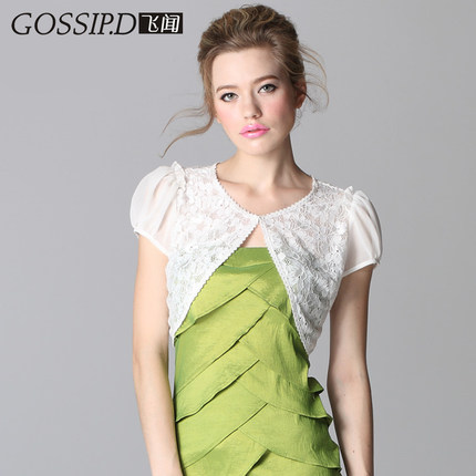 夏季女士短袖小披肩配裙子吊带短款修身坎肩外搭蕾丝雪纺薄款开衫