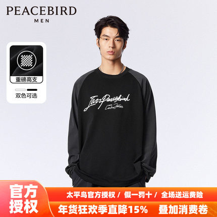 太平鸟男装 插肩袖长袖t恤2025年秋季新款情侣款美式复古打底衫潮