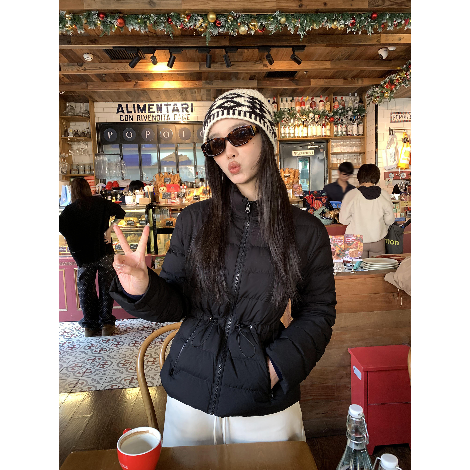 pusumede黑色立领轻薄羽绒服女冬季宽松收腰休闲白鸭绒短款外套