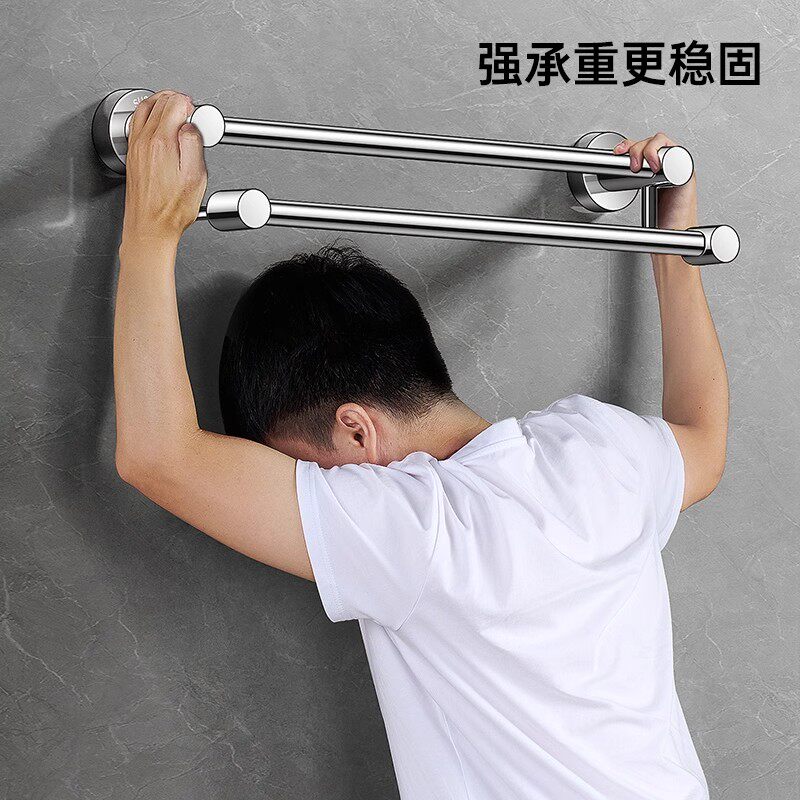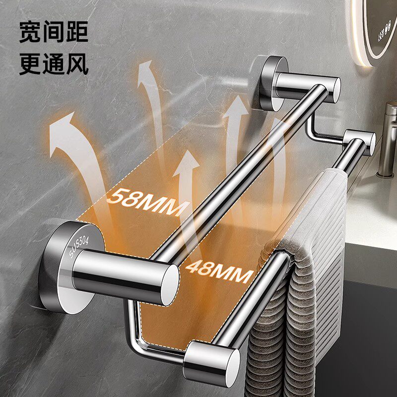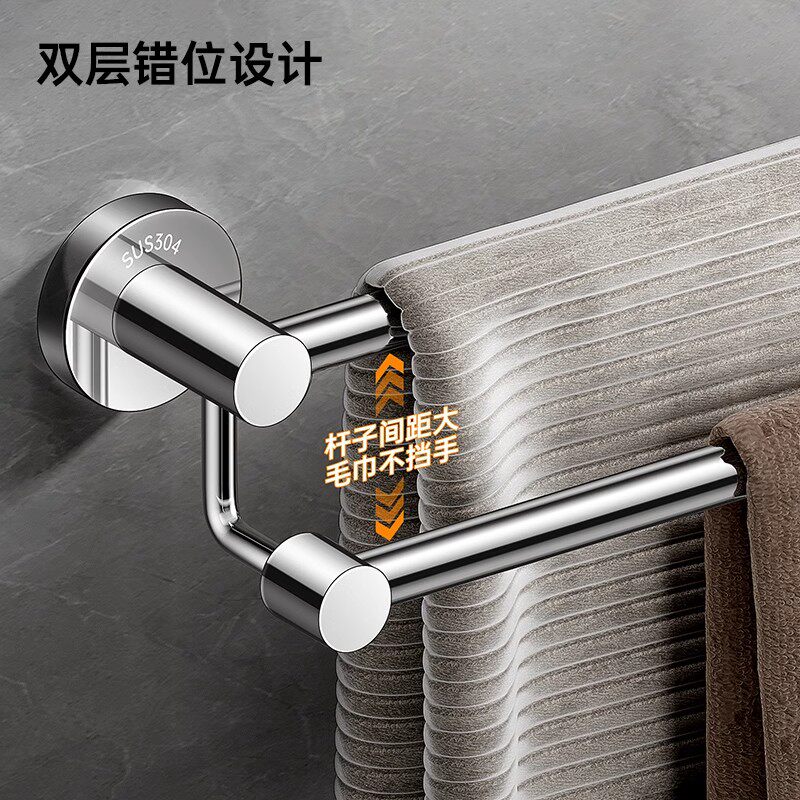 毛巾架304不锈钢毛巾杆单杆卫生间双杆浴巾架免打孔浴室架子挂杆