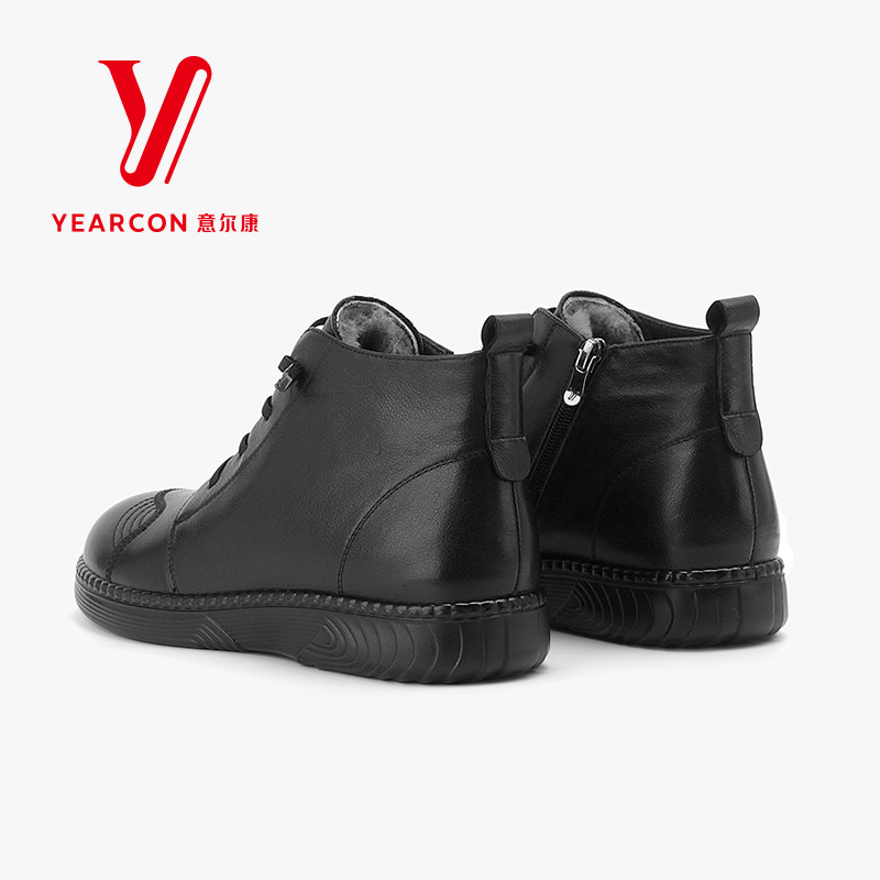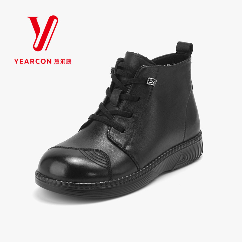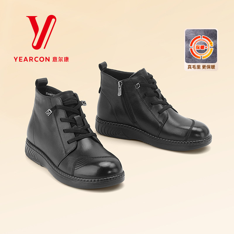 意尔康妈妈棉鞋冬季加绒加厚2025新款短靴中老年靴子真皮软底女靴