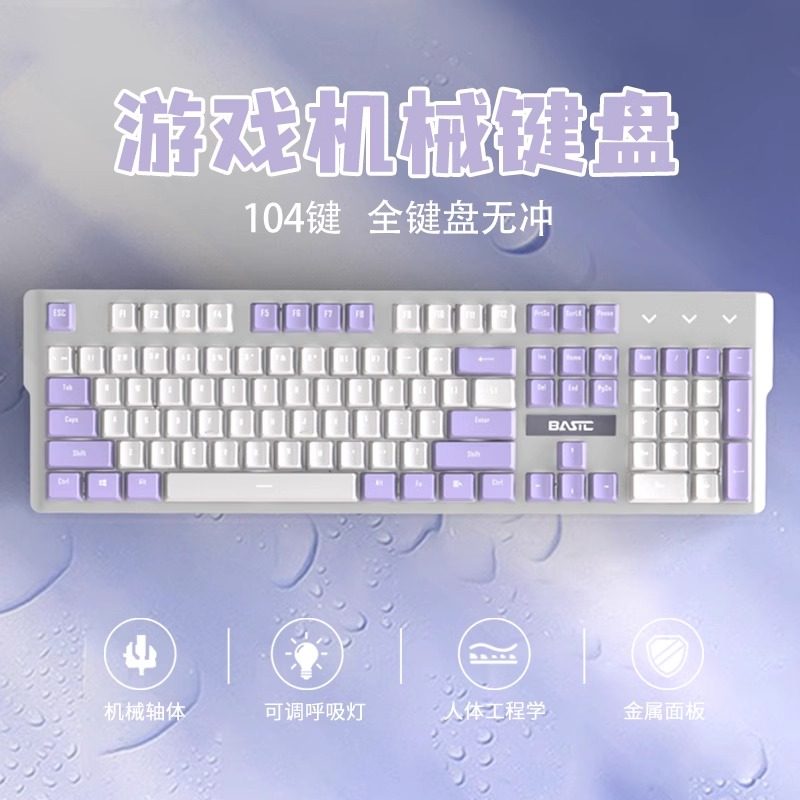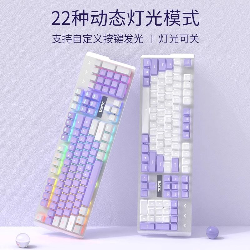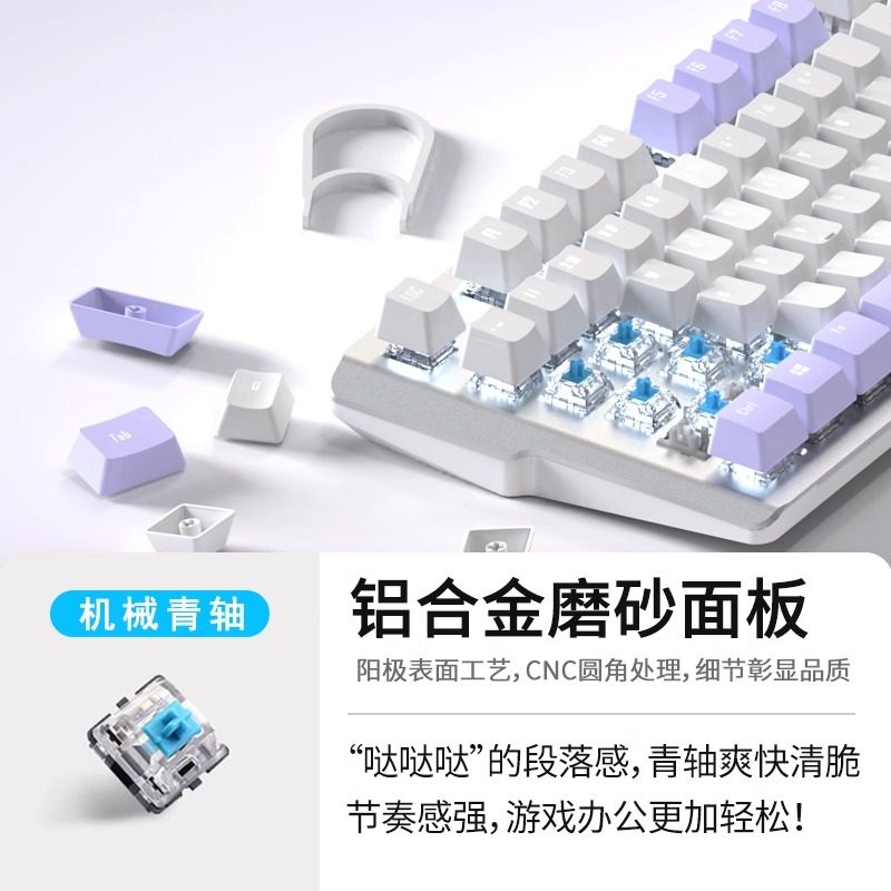 机械键盘紫色电竞游戏有线鼠标套装青轴男女生办公打字笔记本电脑