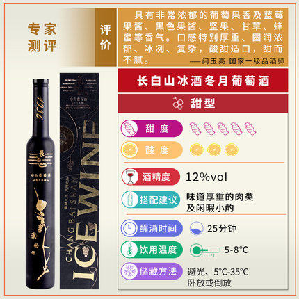 长白山冰酒山葡萄酒冰红葡萄酒冬月采摘单支礼盒装370ml包邮
