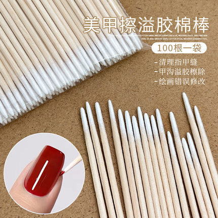 美甲防溢胶棉签棒双头尖嘴多功能一次性甲缝清洁美甲店专用工具