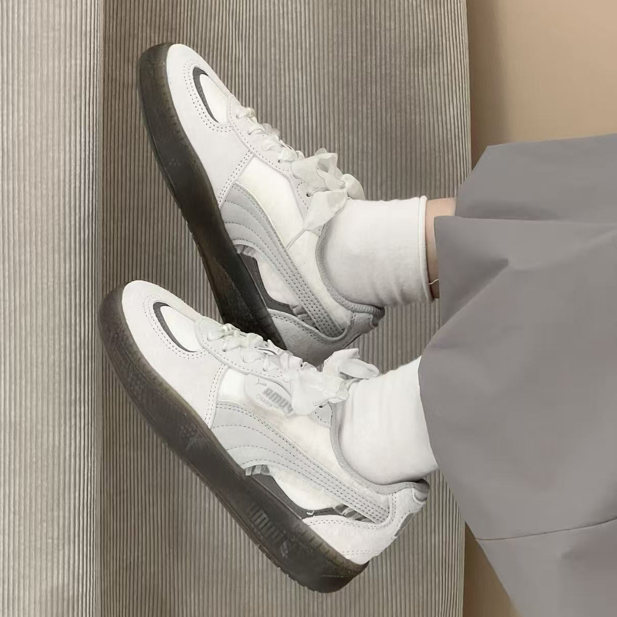 PUMA彪马 复古银灰蕾丝厚底鞋女新款T字鞋德训鞋PALERMO 401286