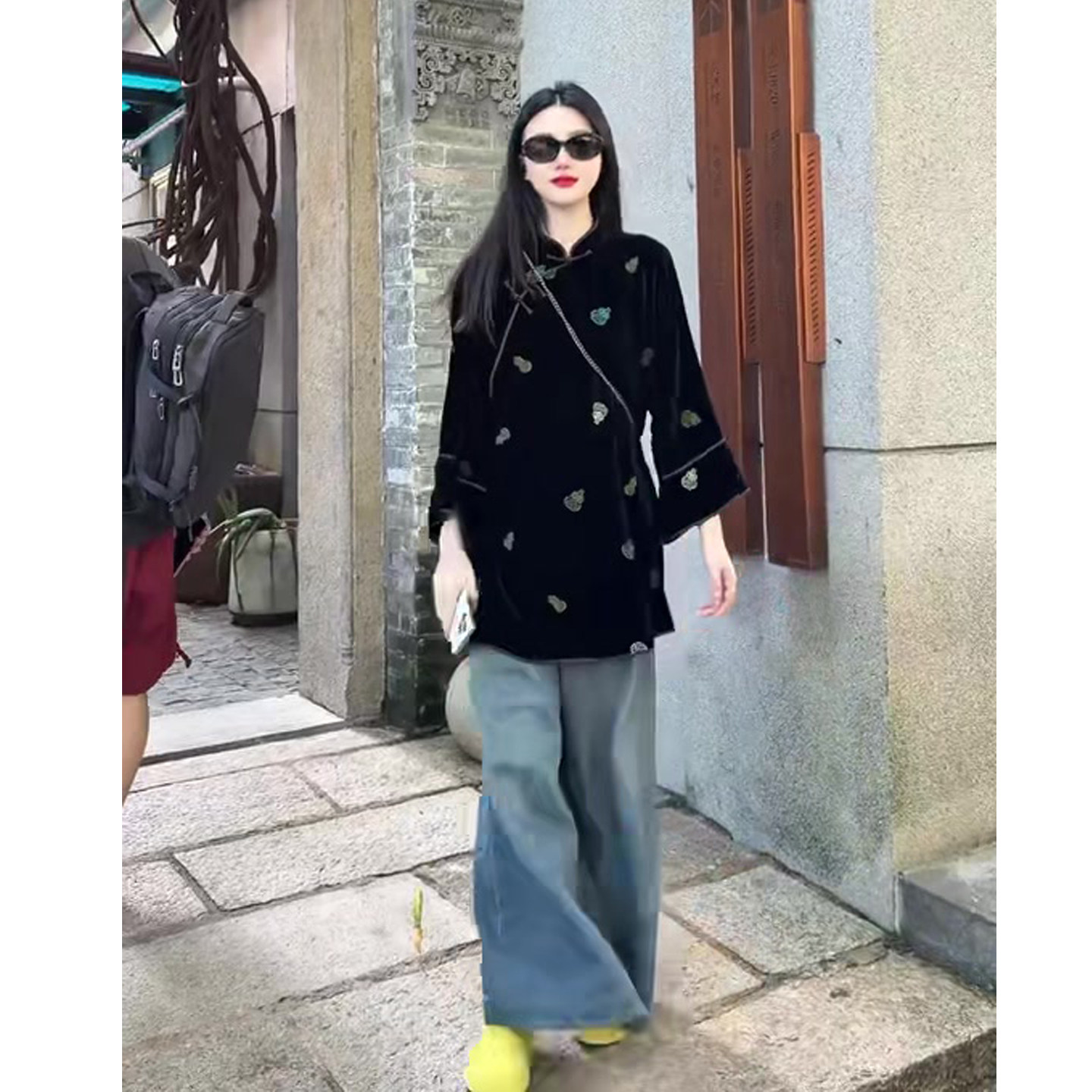 禅意风套装女丝绒上衣+阔腿裤