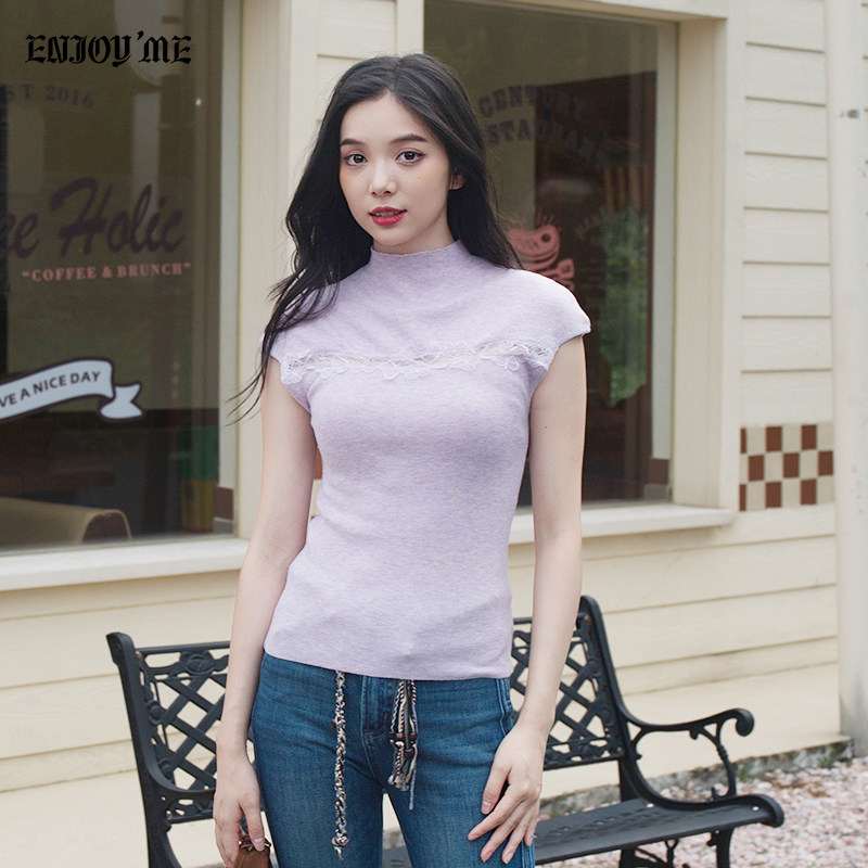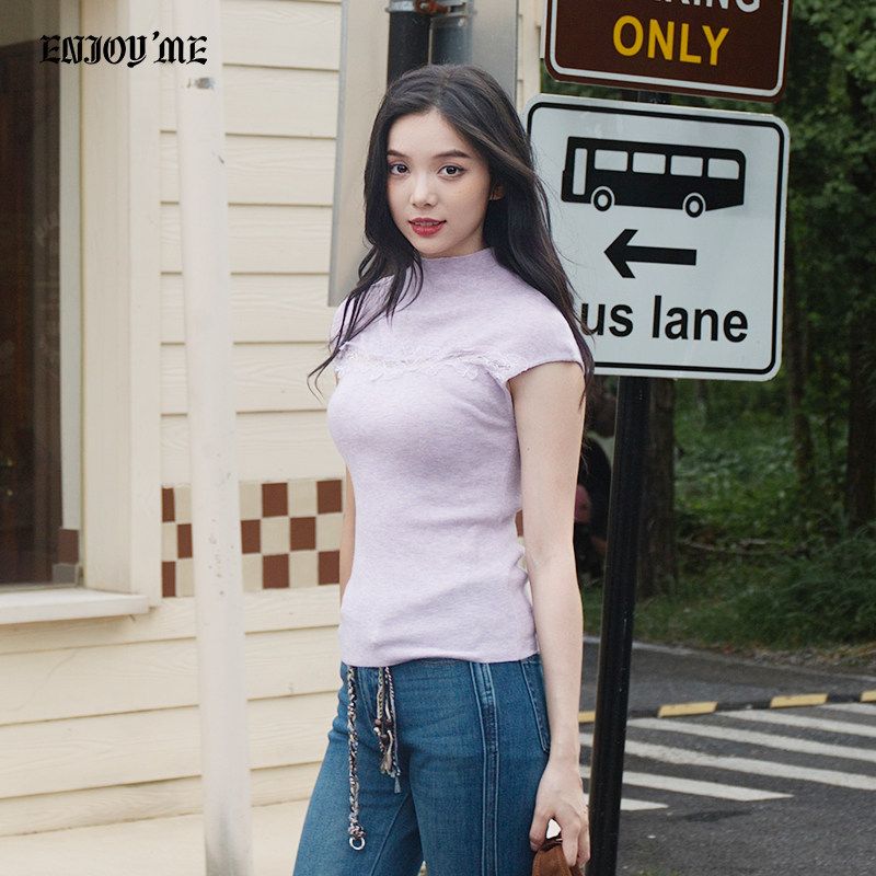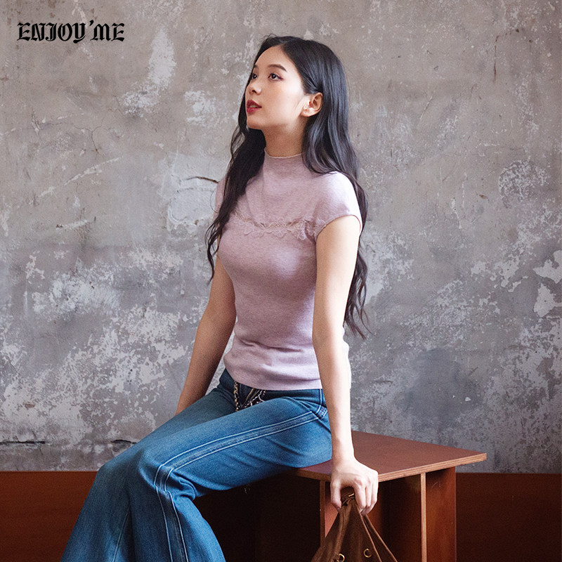 ENJOYME商场同款蕾丝拼接针织T恤