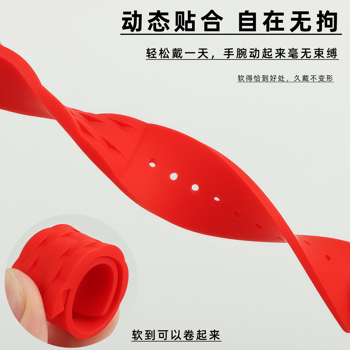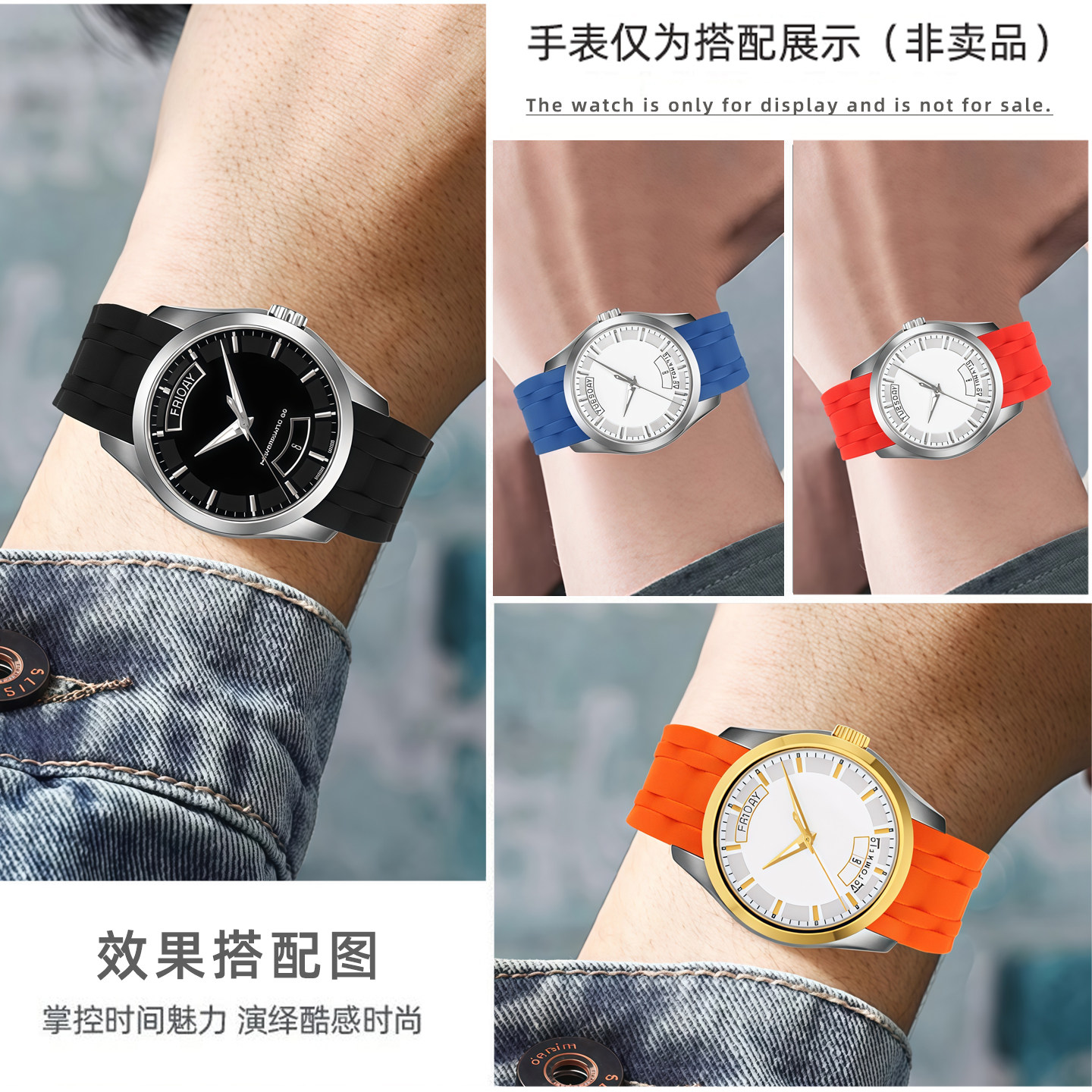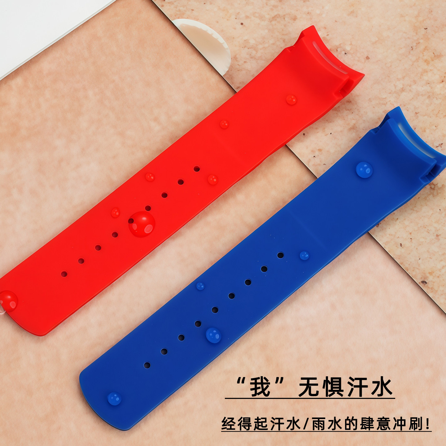 皇致氟橡胶表带 适配天梭T035库图海星弧形接口双按扣配件 男22mm