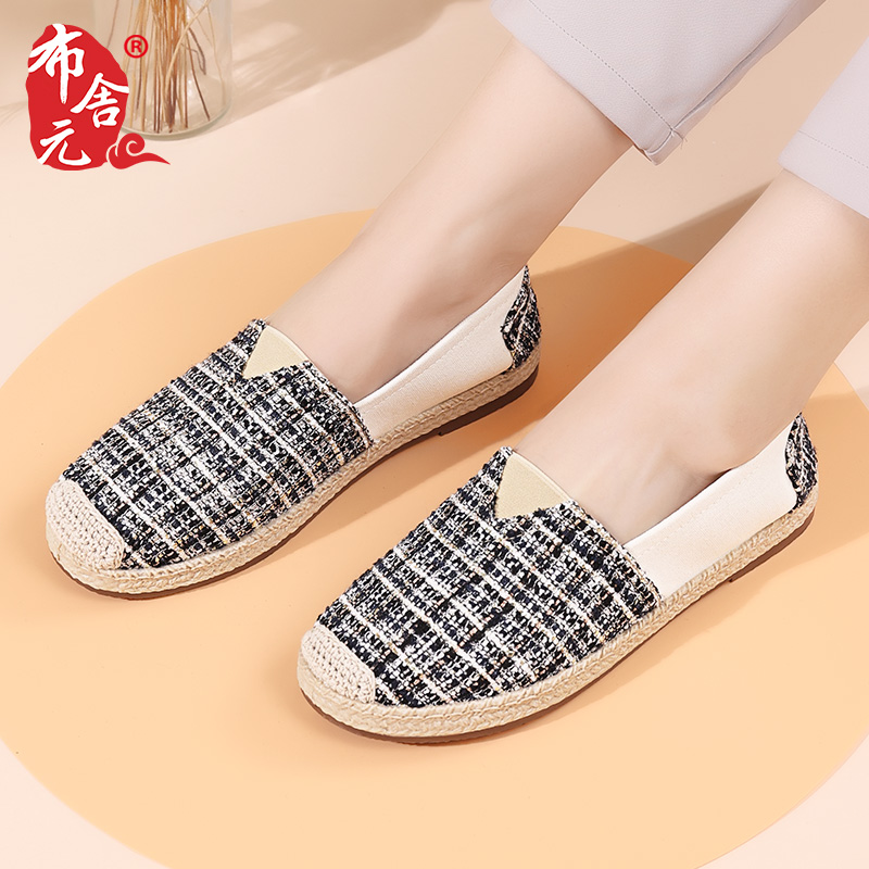 老北京布鞋女春秋新款懒人一脚蹬软平底透气轻便妈妈帆布单鞋