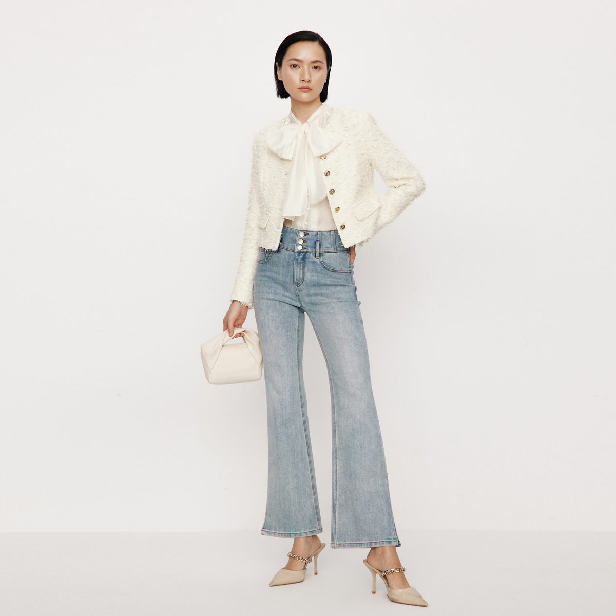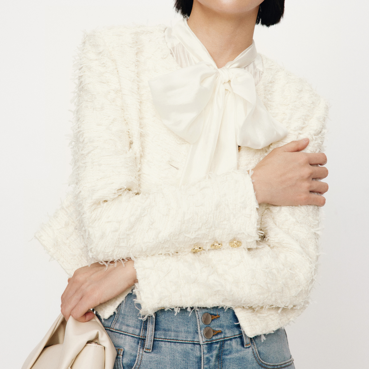 艾诺丝雅诗 小香风短款小个子粗花呢外套女冬季长袖开衫30931077