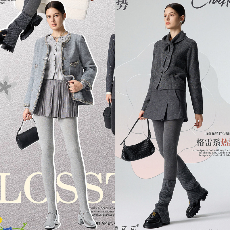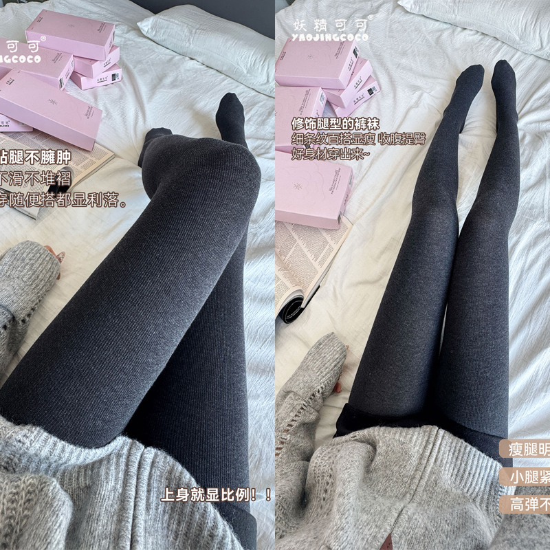 妖精可可10A蕾丝山茶花棉竖条瘦腿袜秋折角腰格雷收腹打底连裤袜