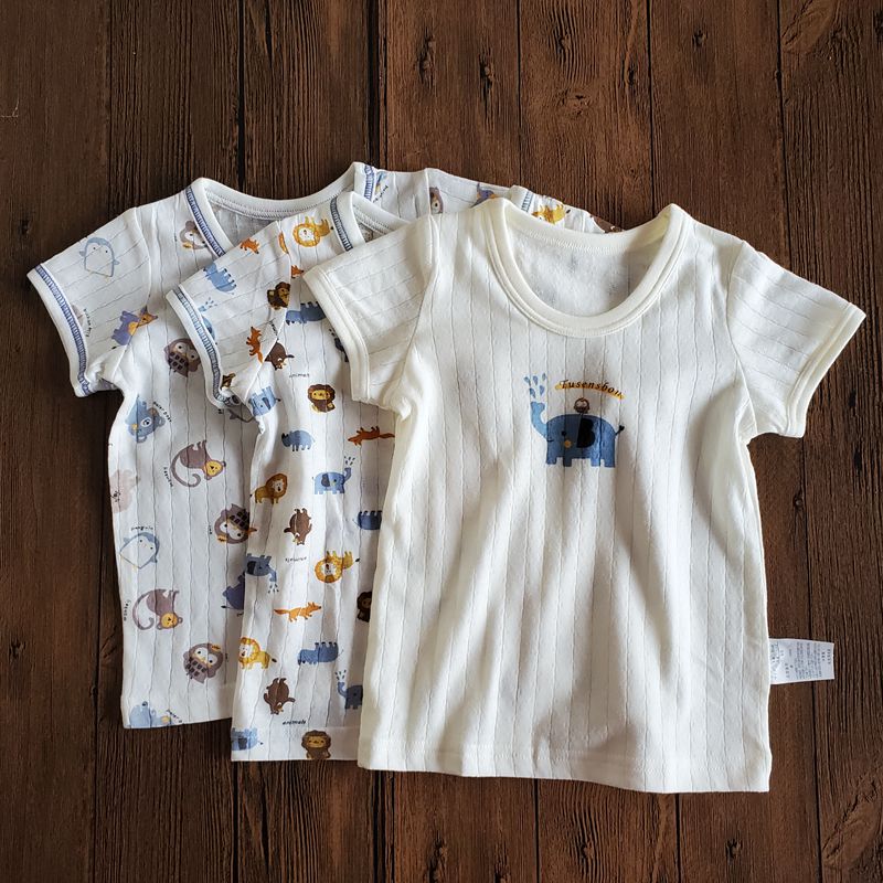 男童短袖上衣纯棉夏装透气吸汗镂空A类无荧光小中大童家居半袖3件