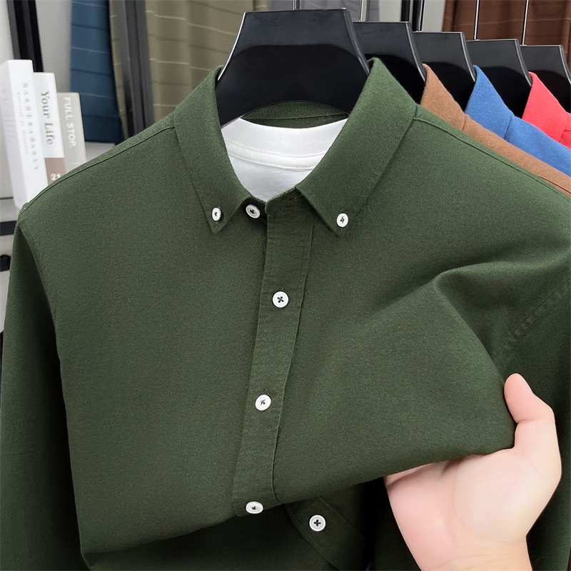 中年重磅纯棉秋冬季磨毛衬衫男长袖日系复古男士纯色宽松衬衣上衣
