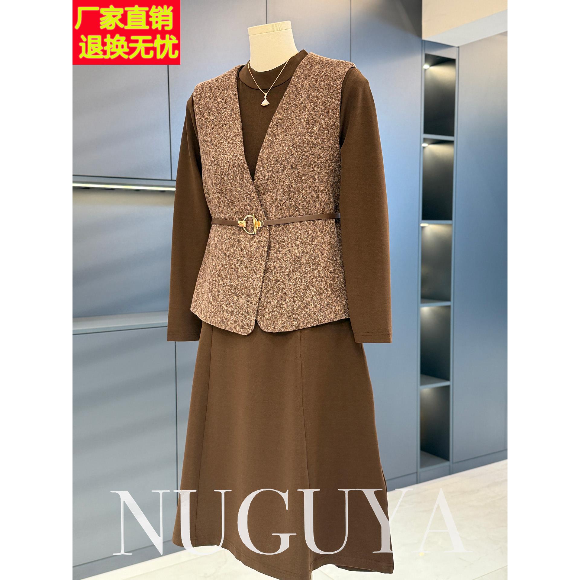 时尚洋气妈妈装马甲套装秋新款上衣气质百搭中老年连衣裙子两件套