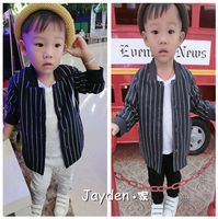 春季新款韩版儿童男女宝宝竖条纹棒球服夹克中长款外套儿童开衫