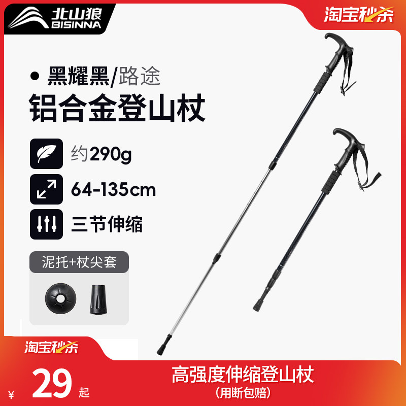 北山狼户外登山杖手杖超轻伸缩男女款折叠徒步登爬山轻便拐杖手杖