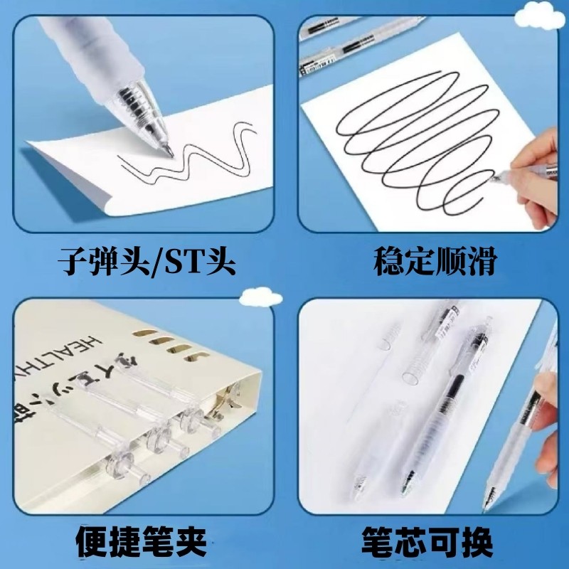 0.5按动笔黑色st头办公培训签字笔子弹头刷题水性笔芯中性笔批发