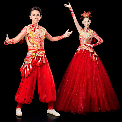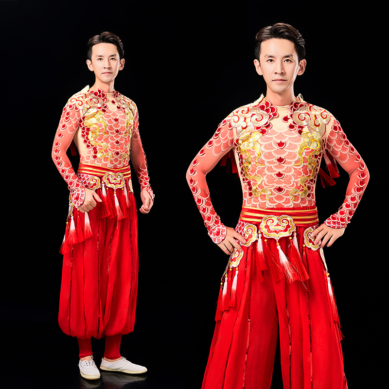 新款龙服男女打鼓服中国风喜庆锣鼓腰鼓服舞龙舞狮开场舞演出服装