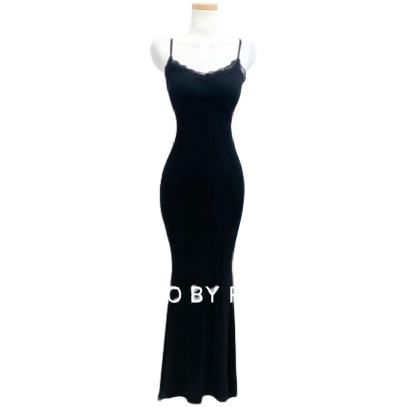 51STUDIO自制 春夏新款显胸大胸垫性感包身深V领长裙吊带连衣裙