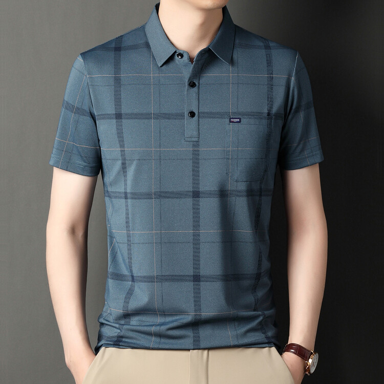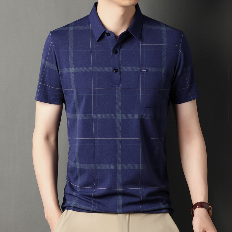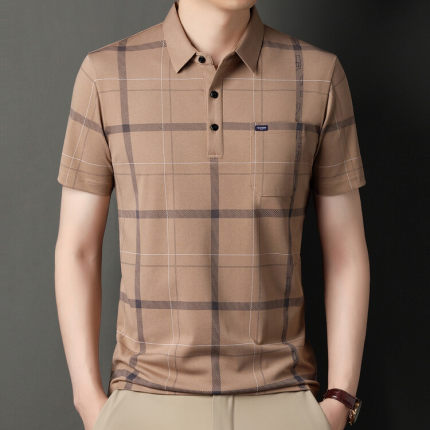 爸爸夏装t恤短袖中老年夏季上衣中年男士丝光棉polo衫父亲节礼物