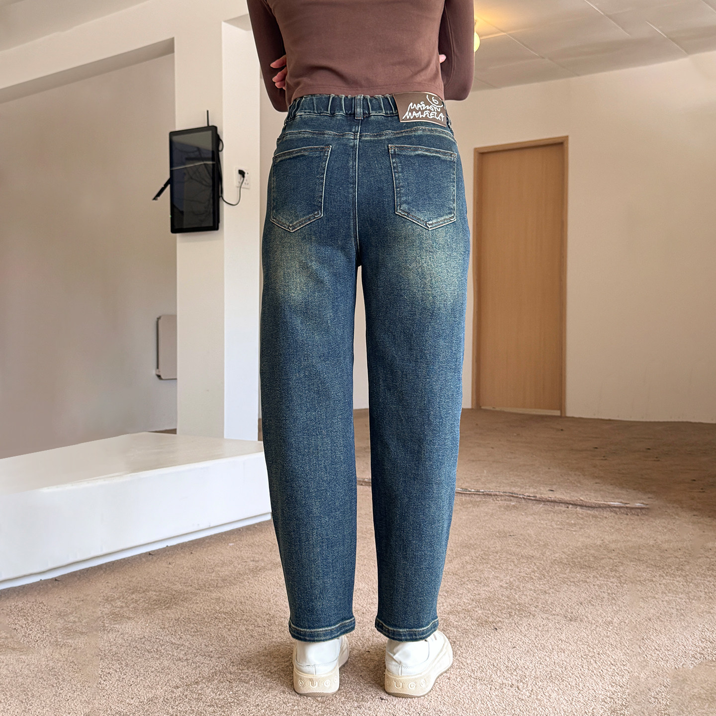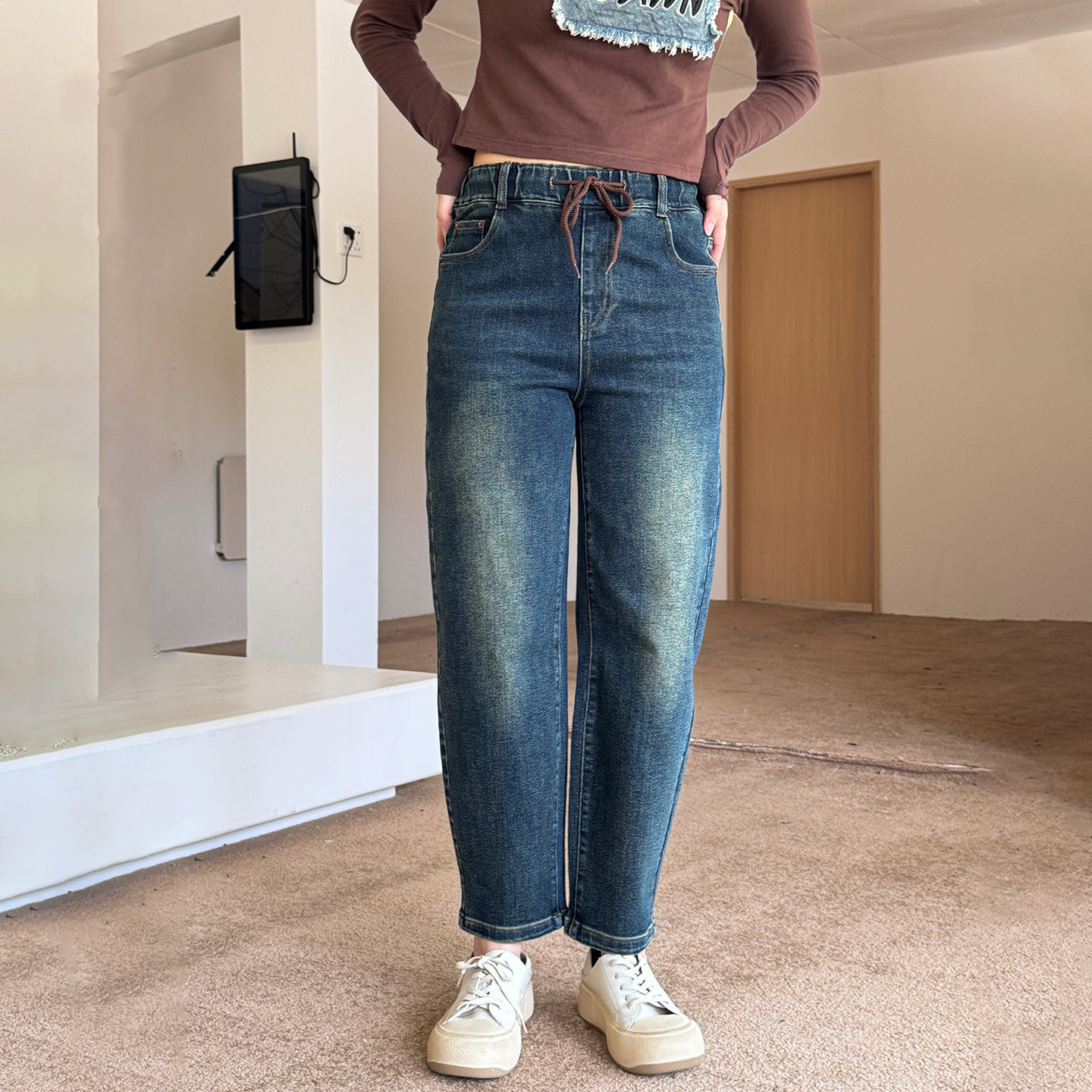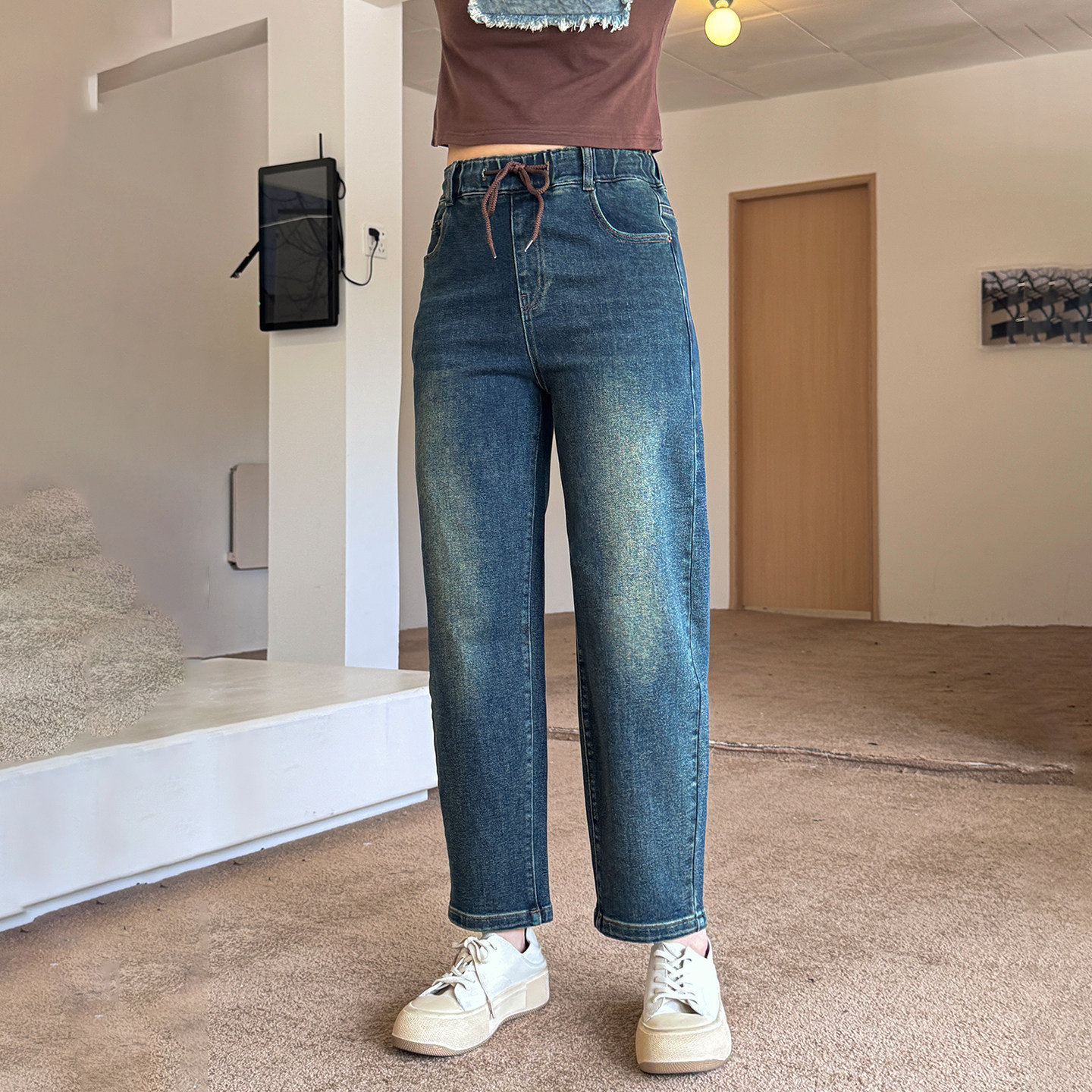 香依雅园 2025秋季新款胖MM大码百搭宽松显瘦蓝色牛仔哈伦裤57188