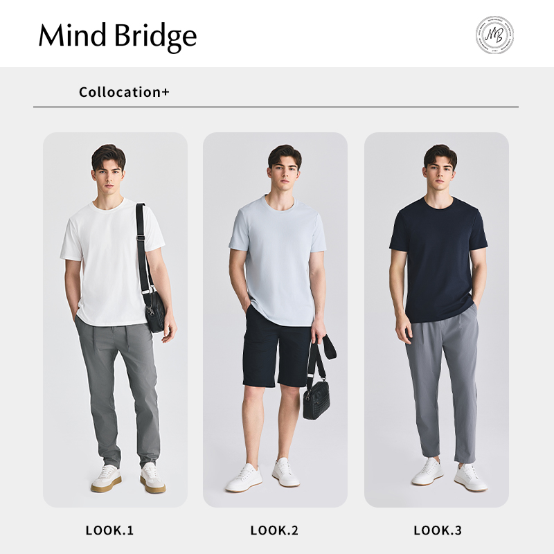 Mind Bridge【桑蚕丝】男士多色薄款短袖2025秋圆领宽松休闲T恤