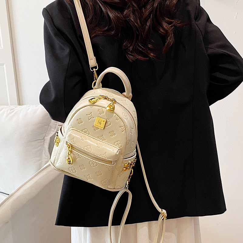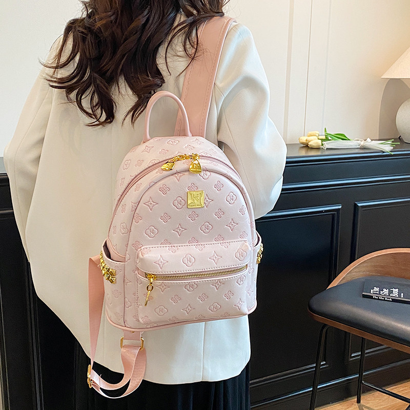 潮品时尚压花粉色双肩包包女2026新款高级感铆钉书包旅行小背包女