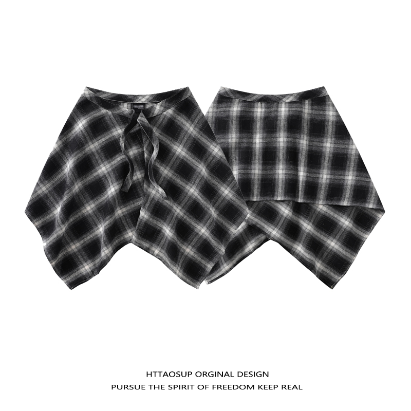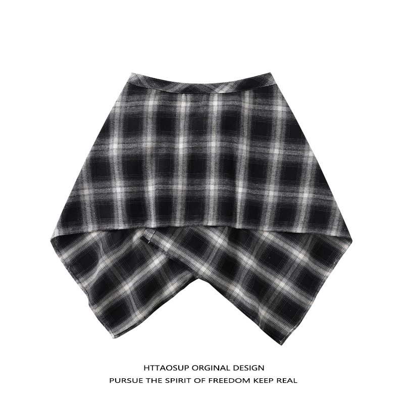 HTTAOSUP遮屁帘女腰封下摆腰黑色格子街舞裙腰带叠穿系衬衫裙摆衬