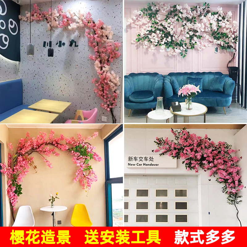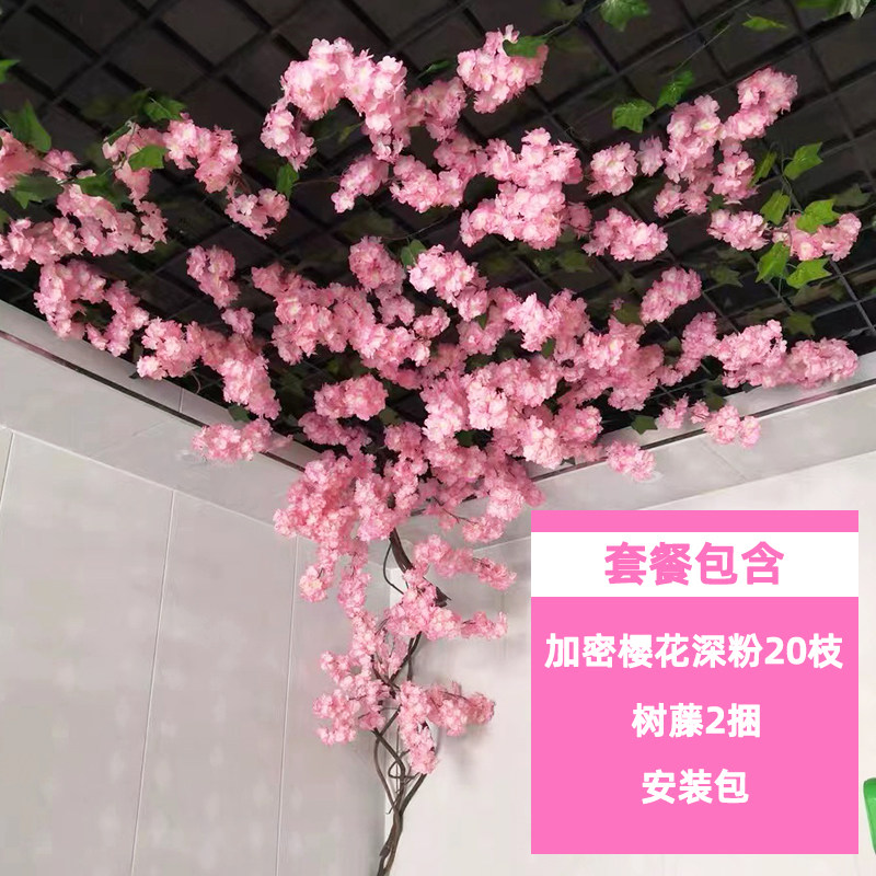 仿真樱花吊顶室内客厅装饰假花餐厅房顶天花板走廊布置仿真花桃花