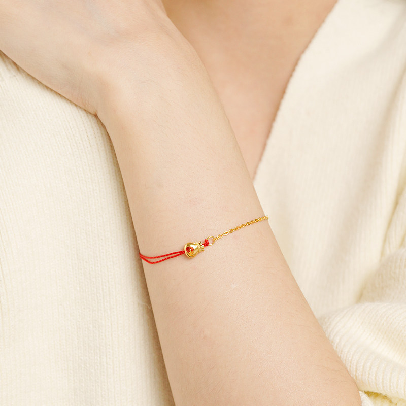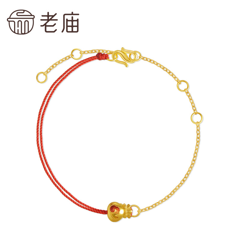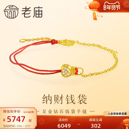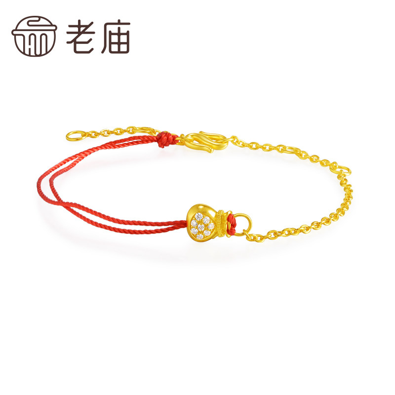 老庙黄金足金999钻石钱袋手链古法转运小红绳ins风财运滚滚送礼